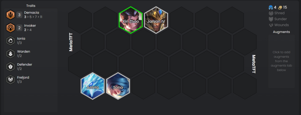 Jika kalian mendapat banyak item ability power, maka opener ini akan sangat membantu kalian mendapatkan winstreak. Keempat unit ini akan mengaktifkan trait Demacia dan Invoker. Tetapi, kekuatan sebenarnya dari comp ini adalah sinergi luar biasa antara debuff dan buff yang diberikan banyak unit yang bertempuru.