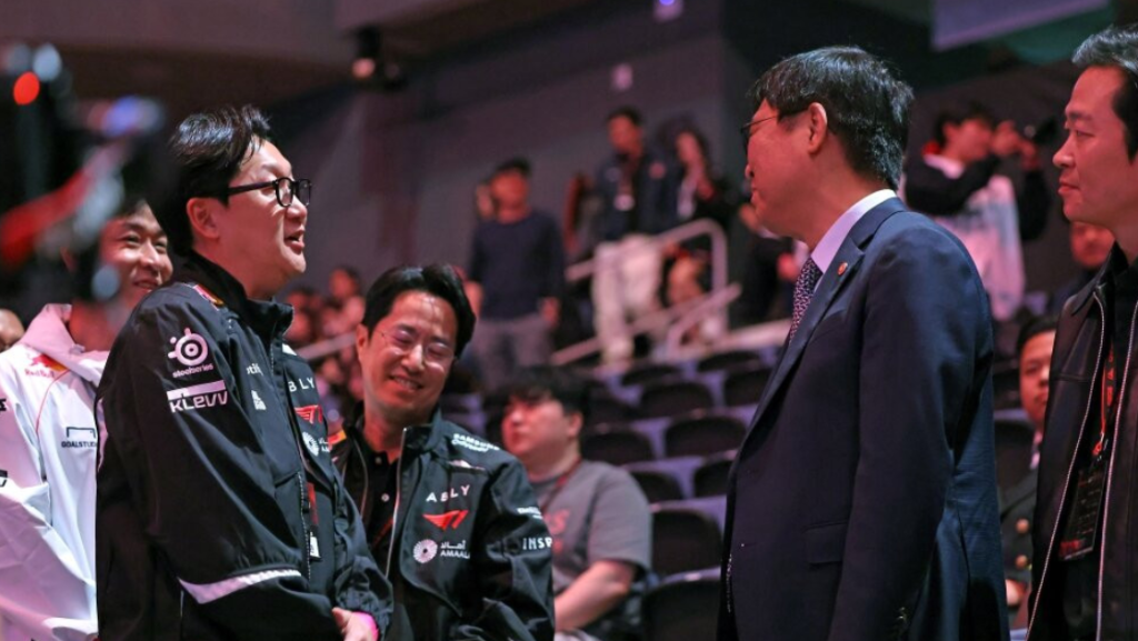 Acara ini juga didatangi tamu penting, yaitu Menteri Kebudayaan Korea Selatan, Choi Hwi-young. Beliau sempat ngobrol sama Faker dkk, bahkan dikasih jersey resmi T1. Pak Menteri bilang kalau pemerintah bakal terus dukung esports supaya jadi budaya keren yang bisa dinikmati semua orang dari anak muda sampai orang tua.