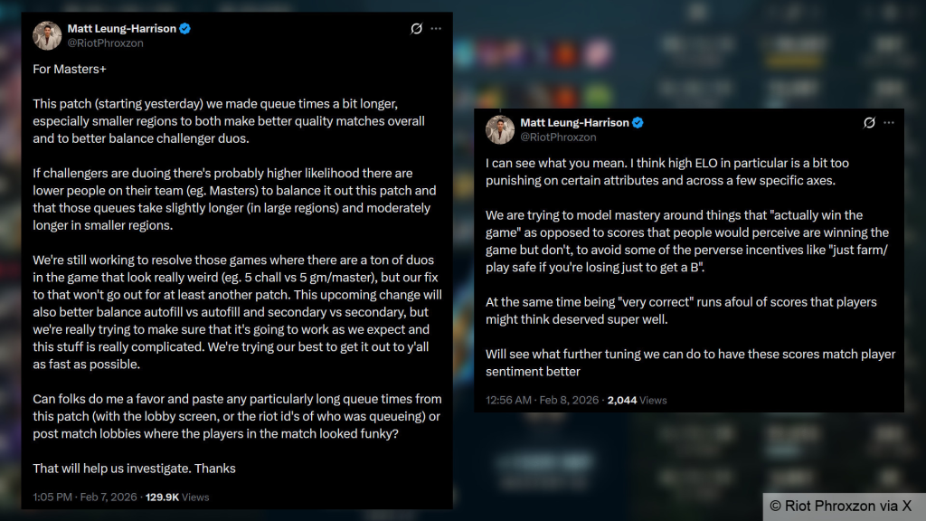 Matt “Phroxzon” Leung-Harrison, selaku Gameplay Lead Riot, menjelaskan bahwa sistem kini akan lebih selektif; jika pemain Challenger melakukan duo, sistem mungkin akan memasangkan mereka dengan rekan setim di peringkat Masters demi menyeimbangkan rata-rata kekuatan tim lawan.