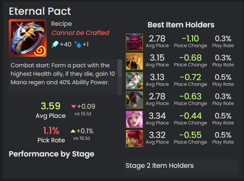 Saat artikel ini ditulis, Ornn menjadi pengguna terbaik dari sebagian besar Artifact baru yang akan ditambahkan, tidak memandang apakah Artifact tersebut ditujukan untuk Tank seperti dirinya atau tidak. Namun, hal ini bisa berubah ketika semua pemain sudah mendapat kesempatan memainkan Set 16 tanpa harus terjun ke PBE.