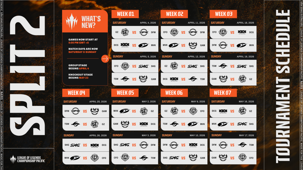 Setelah Split 1 yang penuh kejutan dan kemunculan juara baru, League of Legends Championship Pacific (LCP) siap kembali bergulir pada 4 April 2026. Bekerja sama dengan VNGGames dan mitra strategis lainnya, LCP Split 2 menjanjikan tensi yang lebih tinggi karena ada tiket menuju Mid-Season Invitational (MSI) yang dipertaruhkan.
