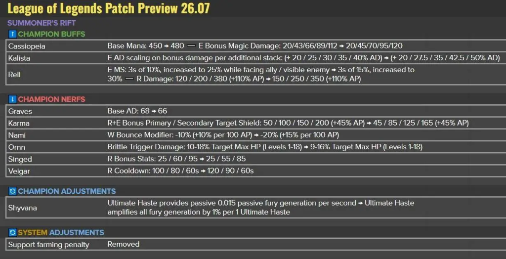 Patch 26.7 Hapus Penalti Gold Support dan Rombak Shyvana