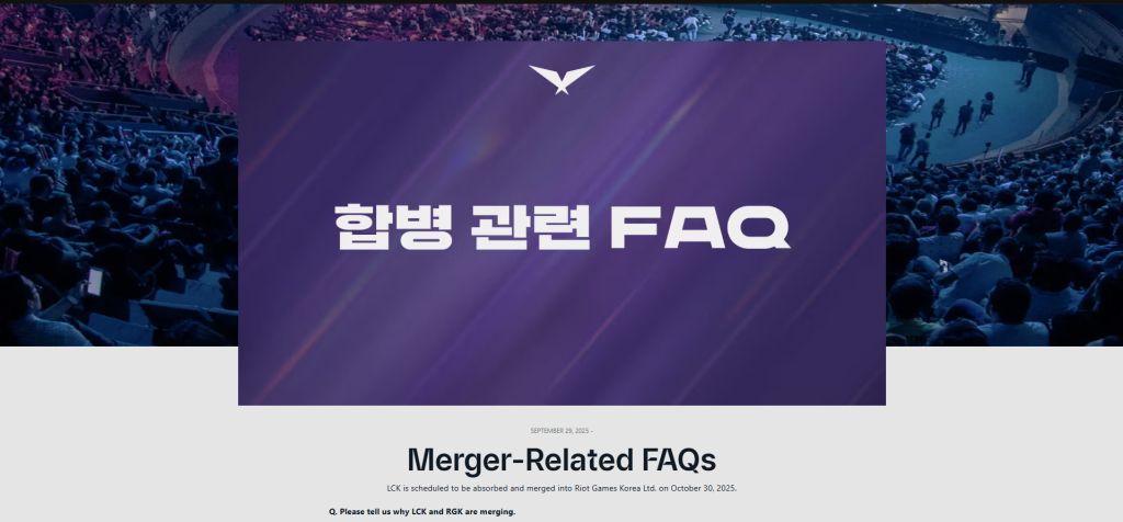 Belum lama ini, Riot Games Korea mengunggah sebuah pengumuman penting terkait liga League of Legends di Korea Selatan, LCK, di mana mereka akan memasukkan liga tersebut sebagai bagian dari Riot Games Korea.