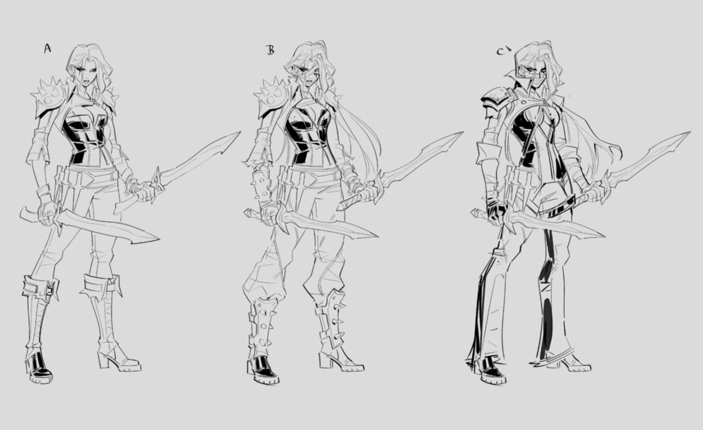 Katarina yang merupakan champion assassin, sekarang dibuat lebih gelap dan mengerikan, plus lebih serius juga. Ada versi yang menggunakan penutup mata, ada yang menggunakan topeng seperti Singed dan lainnya. Bisa dijelaskan kalau champion ini di 2XKO dibuat lebih modern dibanding apa yang ada di game lain. Riot juga menjelaskan kalau ide konsep ini bisa digunakan untuk pertanyaan apa jadinya jikalau Katarina masuk.